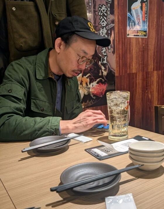 渋谷へ移動してひと休憩しているポイ店長坂爪さん