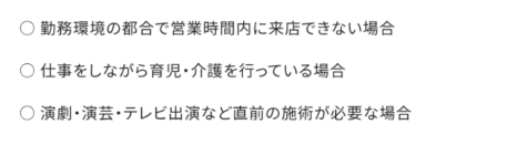 - 仕事が忙しすぎて、店舗の営業時間内に来店できない人はオフィスや自宅で施術を受けれるのだから企業の福利厚生としてオフィスに出張理容を呼ぶとかありそう